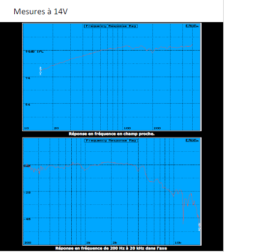 Sensibilité 2.83 V/1m 96 à 98 dB Alimentation 9 à 15 Volts CC. |